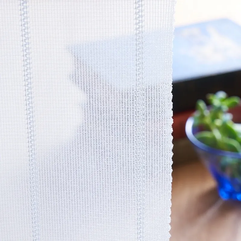 ミラー・UVカット機能付きのレースカーテンです。シンプルな縦ストライプの使いやすいレースです。