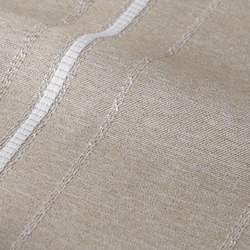 リボンテープで引かれたかの様なストライプと糸の光沢がキラキラ光るストライプが印象的な遮光3級のカーテンです。程よい高級感がリビングなどに使いやすいです。